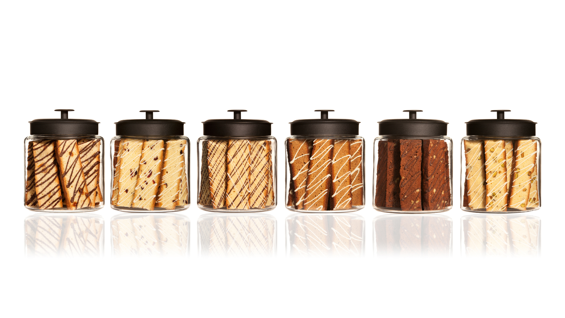 Merchandising these jars for customers to clearly see the fresh baked product increases sales dramatically. Our biscotti jars (sold separately) include an air tight seal to protect product freshness.