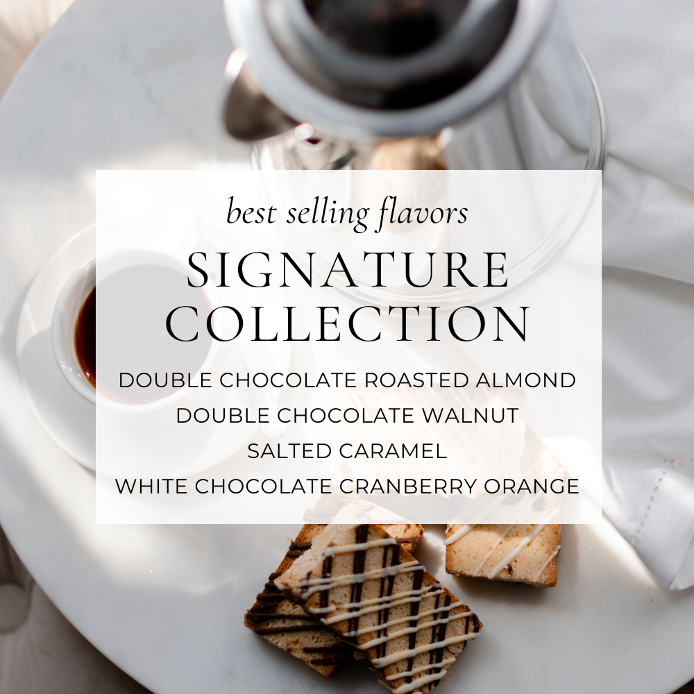 Elevate your gift giving and make your recipient feel truly special with our selection of gifts that not only are beautiful, but they are filled with our best-selling biscotti or cookies.
