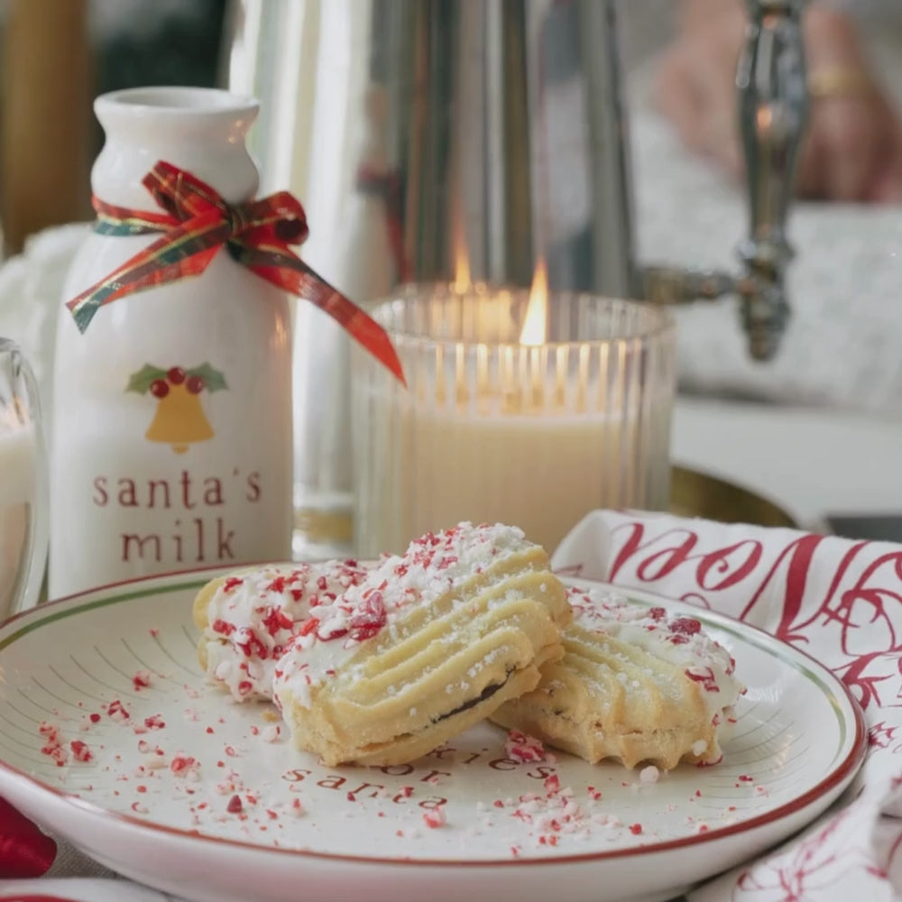 Our White Chocolate Peppermint Cookies are great way to spread seasonal cheer! This cookie is spread with a decadent fudge filling, covered in smooth white Belgian chocolate and topped with crushed peppermint pieces.